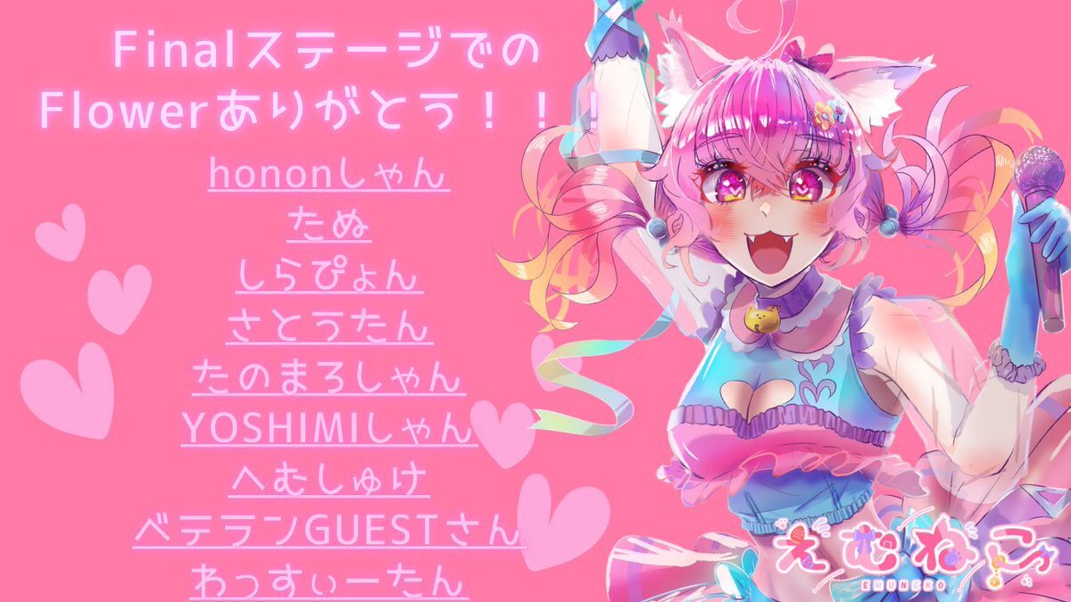 リアルLIVE出演オーディションにEMUNEKOさんが参加🥳 選曲はトウキョウ・シャンディ・ランデヴ♪やっぱり歌唱力はプロレベル! ボム太郎もお花を送らせてもらいました💐 他の出演者の方々も個性を表現されてて、かっこ良きでした😊 もう少し観覧者増えないかな…おもしろいイベントなのに。 x.com/emmnyannn/stat…